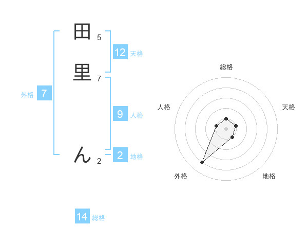 田里 んさんの総格は14画の1点!