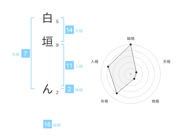 白垣 んさんの総格は16画の5点!
