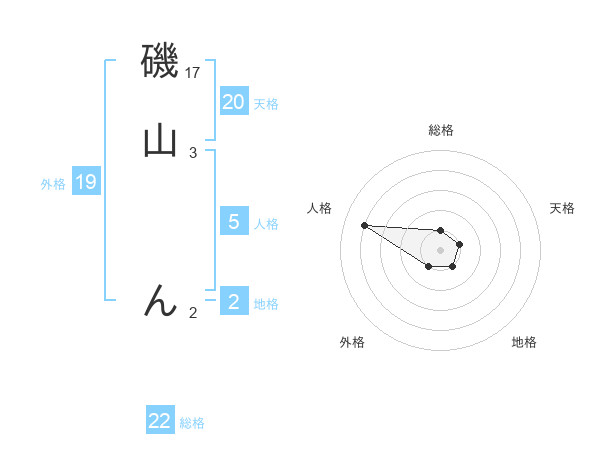 磯山 んさんの総格は22画の1点!