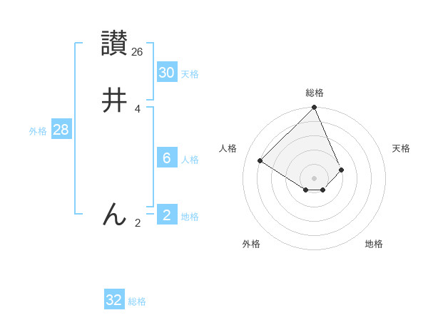 讃井 んさんの天格は30画の2点!