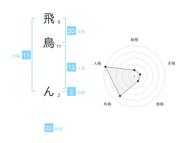 飛鳥 んさんを姓名の画数から五運を鑑定