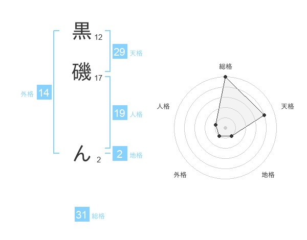 黒磯 んさんの天格は29画の4点!