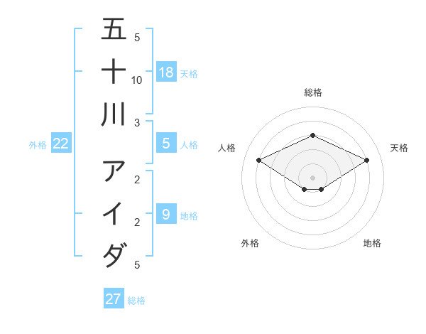 五十川 アイダさんを姓名の画数から五運を鑑定
