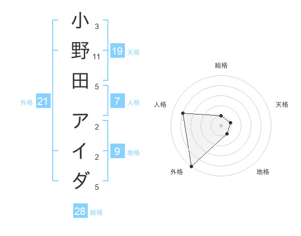 小野田 アイダさんを姓名の画数から五運を鑑定