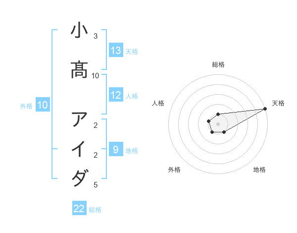 小髙 アイダさんを姓名の画数から五運を鑑定