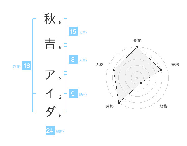 秋吉 アイダさんを姓名の画数から五運を鑑定