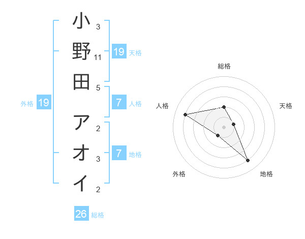 小野田 アオイさんの外格は19画の1点!