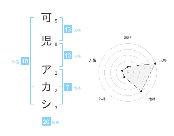 可児 アカシさんの天格は13画の5点!