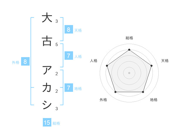 大古 アカシさんの総格は15画の4点!