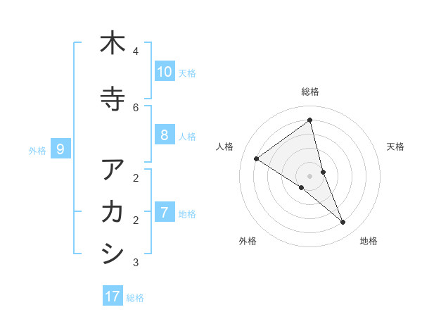 木寺 アカシさんの総格は17画の4点!