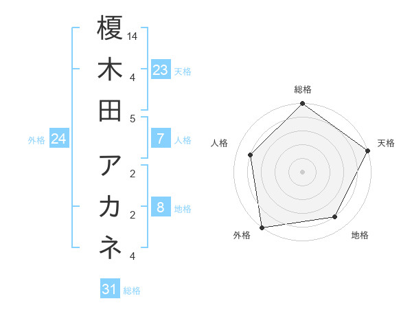榎木田 アカネさんを姓名の画数から五運を鑑定