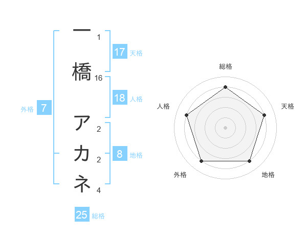 一橋 アカネさんの地格は8画の4点!