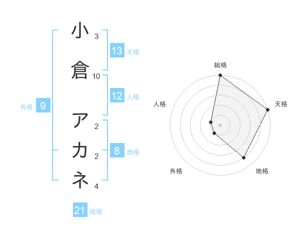 小倉 アカネさんの天格は13画の5点!