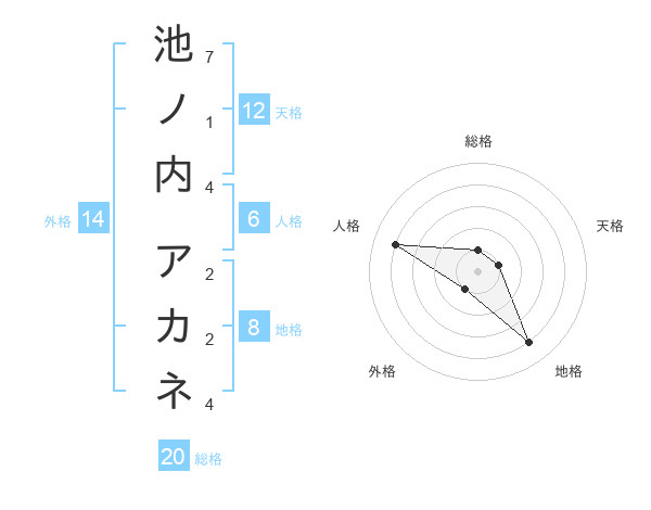 池ノ内 アカネさんを姓名の画数から五運を鑑定