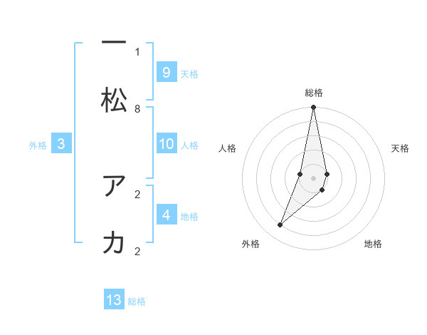 一松 アカさんの総格は13画の5点!