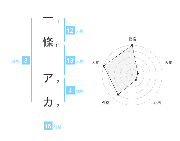 一條 アカさんの総格は16画の5点!