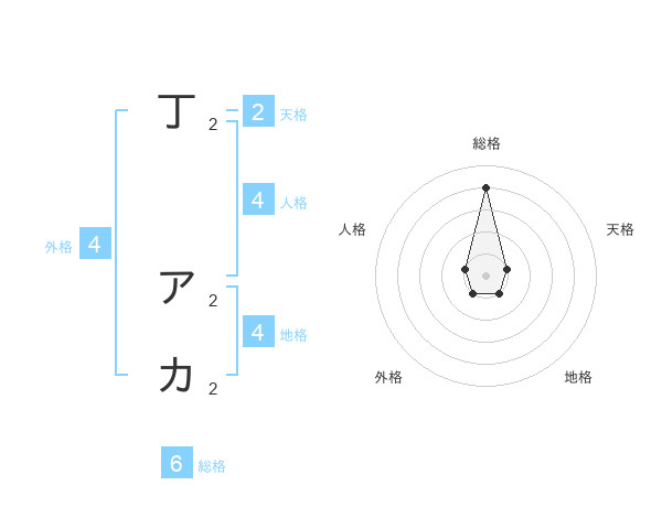 丁 アカさんの総格は6画の4点!