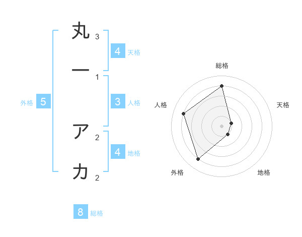 丸一 アカさんの総格は8画の4点!