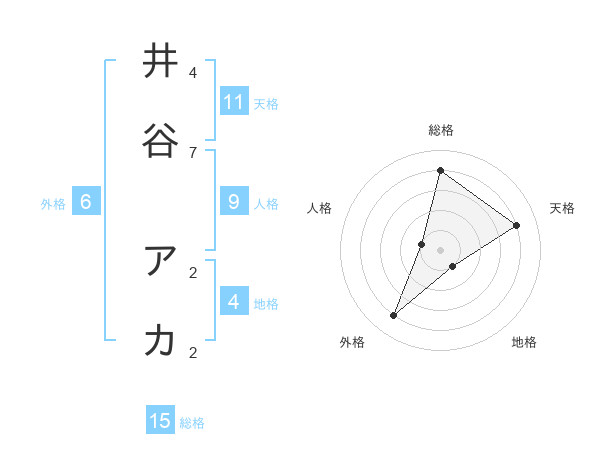 井谷 アカさんの総格は15画の4点!
