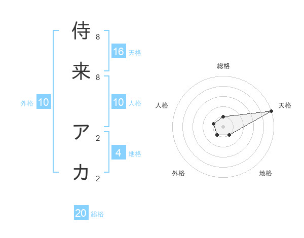 侍来 アカさんの総格は20画の1点!