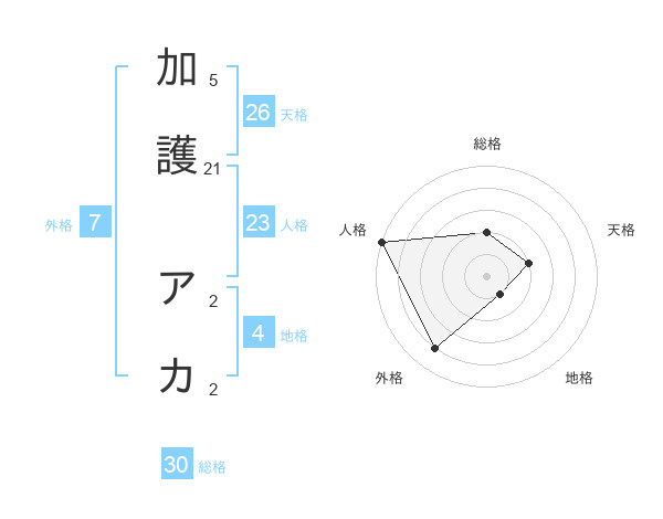 加護 アカさんの総格は30画の2点!