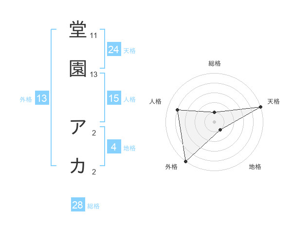 堂園 アカさんの天格は24画の5点!