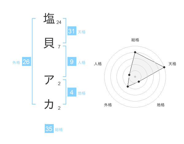 塩貝 アカさんを姓名の画数から五運を鑑定