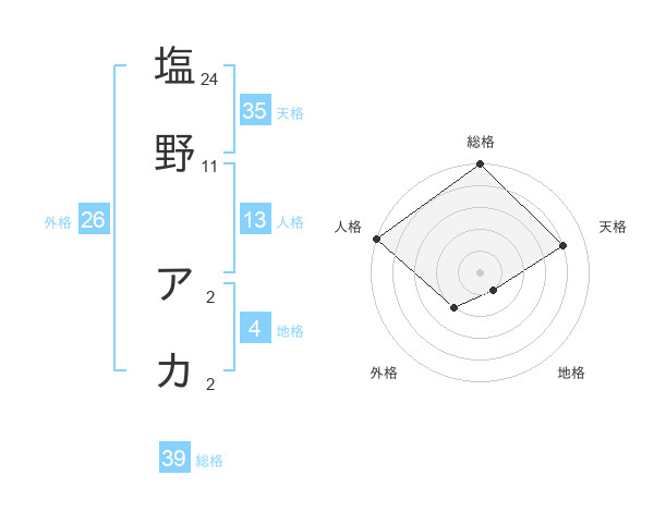 塩野 アカさんの総格は39画の5点!
