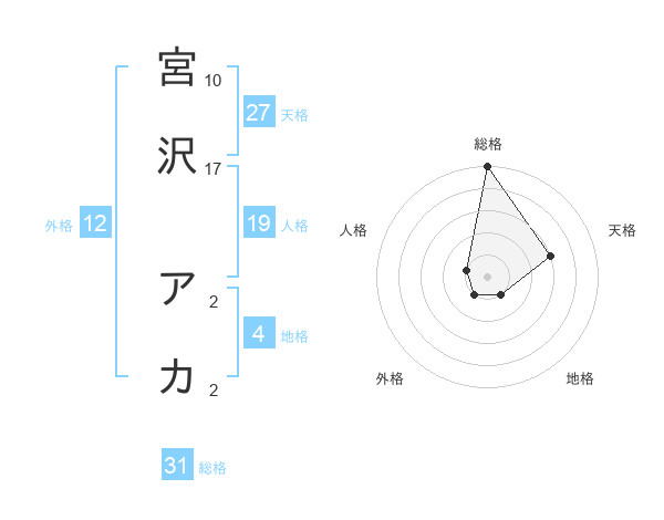 宮沢 アカさんの総格は31画の5点!