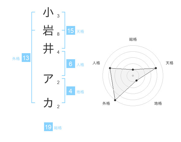 小岩井 アカさんの外格は13画の5点!