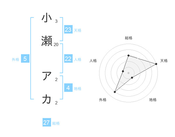小瀬 アカさんの総格は27画の3点!