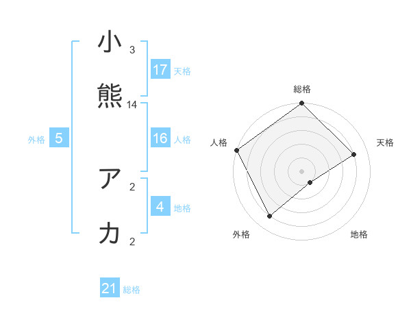 小熊 アカさんの天格は17画の4点!