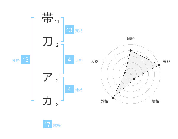 帯刀 アカさんの総格は17画の4点!