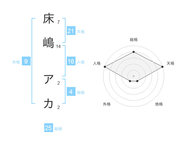 床嶋 アカさんを姓名の画数から五運を鑑定