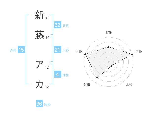 新藤 アカさんの天格は32画の5点!