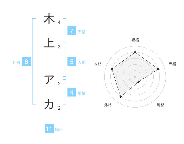 木上 アカさんの総格は11画の4点!