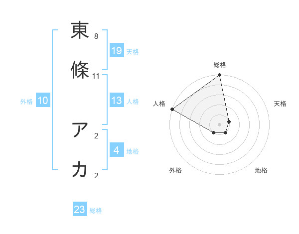 東條 アカさんの総格は23画の5点!