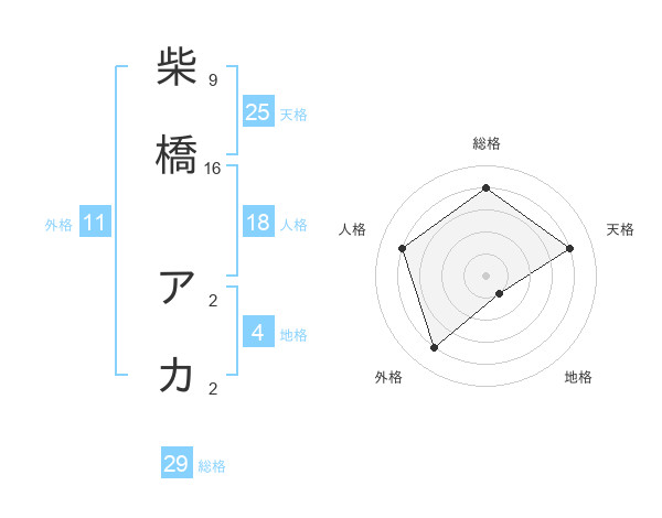 柴橋 アカさんを姓名の画数から五運を鑑定