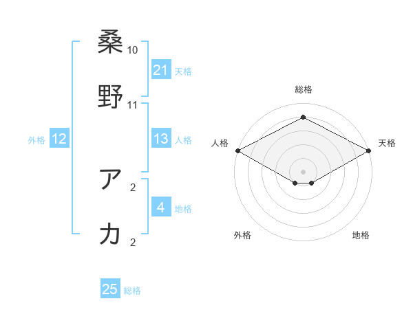 桑野 アカさんの天格は21画の5点!
