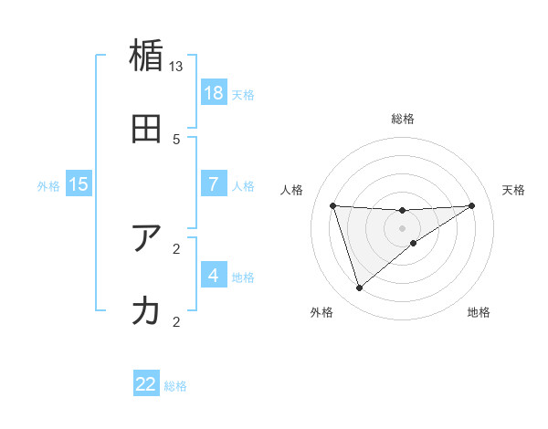 楯田 アカさんの外格は15画の4点!
