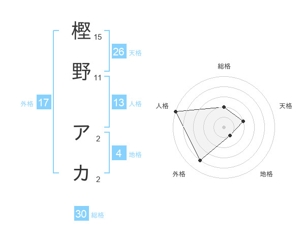 樫野 アカさんの外格は17画の4点!