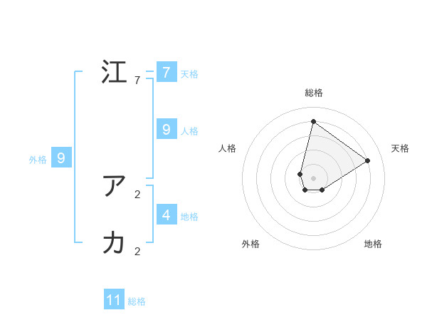 江 アカさんの総格は11画の4点!