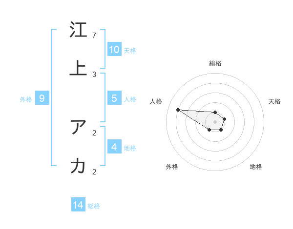江上 アカさんの総格は14画の1点!