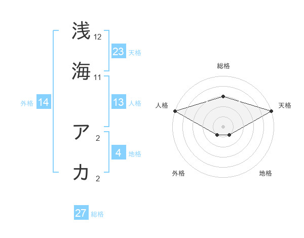 浅海 アカさんの総格は27画の3点!