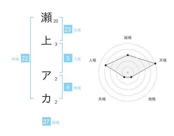 瀬上 アカさんの天格は23画の5点!