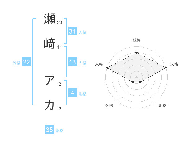 瀬﨑 アカさんを姓名の画数から五運を鑑定