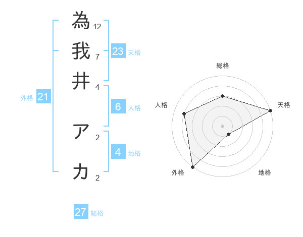 為我井 アカさんの総格は27画の3点!