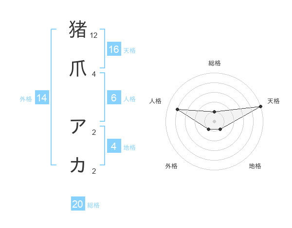 猪爪 アカさんの総格は20画の1点!