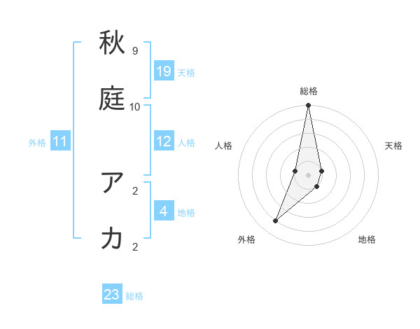 秋庭 アカさんを姓名の画数から五運を鑑定