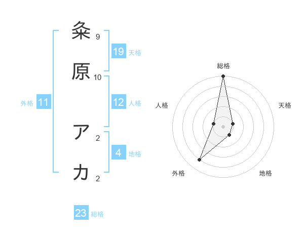 粂原 アカさんの総格は23画の5点!